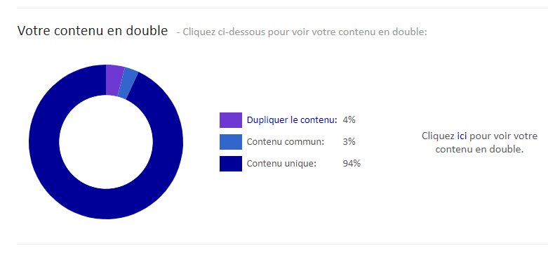 Son utilisation reste assez simple, vous entrez juste le nom de domaine du site et l’outil se chargera de fournir un graphique avec le taux de pourcentage des contenus dupliqués.