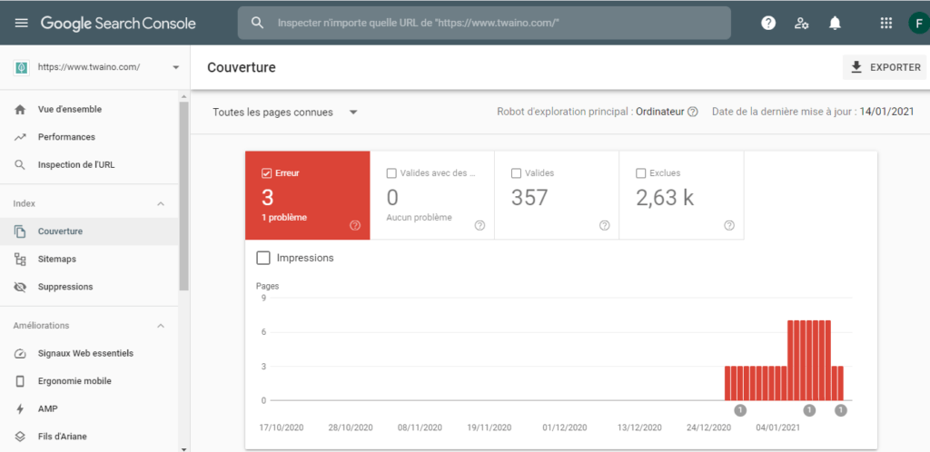 2.3. Monitorez l’état d’indexation de votre site avec la Google Search Console