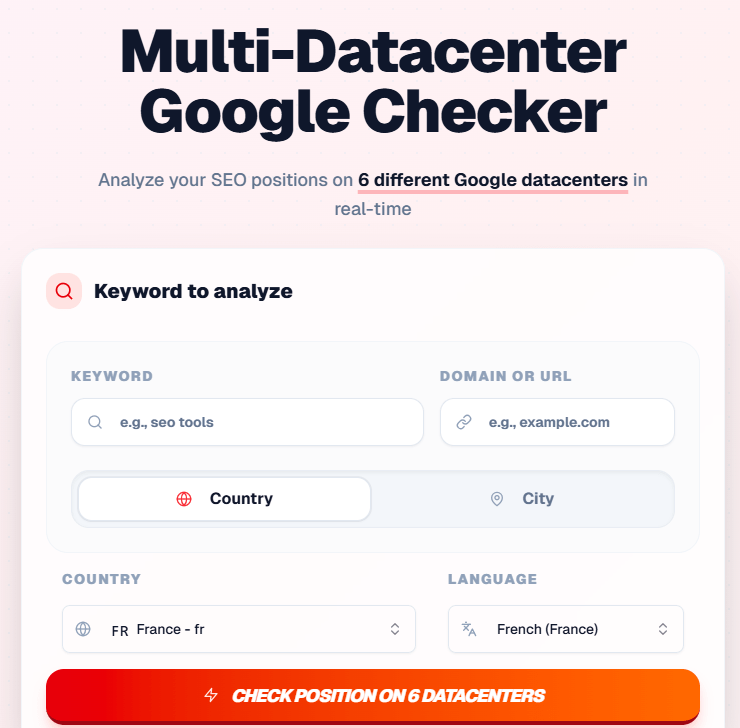 Parmi la myriade de SEO Hero Ninja tools disponibles sur le web, ce multi-datacenter Google checker s’est démarqué comme une référence pour les créateurs de sites et les référenceurs. Entièrement gratuit, il permet de contourner les filtres de Google en interrogeant simultanément plusieurs de ses serveurs (Datacenters) afin de vous renvoyer votre classement réel, neutre et non personnalisé.